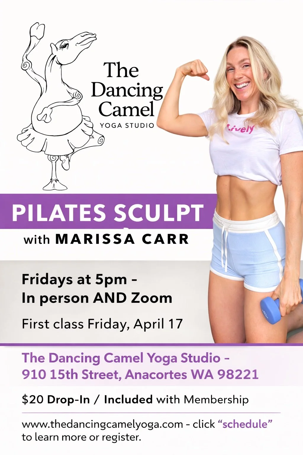 New Class! Pilates Sculpt! April 11, 2026 Danelle McGee New Teacher Marissa Carr brings Pilates to The Dancing Camel!